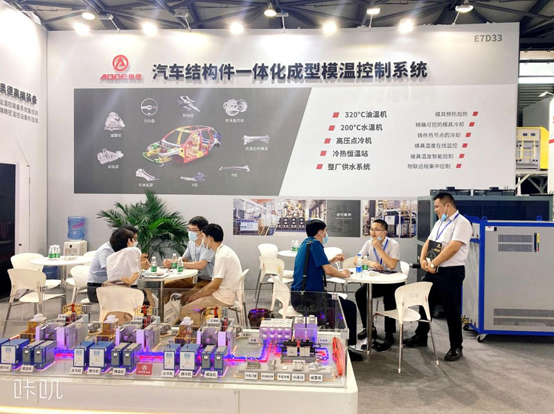 奧德推出“汽車結(jié)構(gòu)件一體化成型溫控系統(tǒng)”,攜320℃超高溫油溫機(jī),200℃超高溫水溫機(jī)、壓鑄專用冷熱溫控系統(tǒng)、工業(yè)風(fēng)冷冷水機(jī)亮相本次壓鑄展。